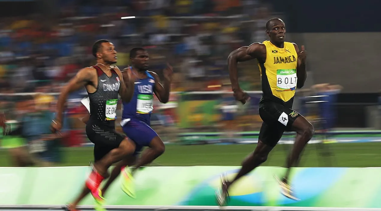Who is the fastest man in the 100m sprint?